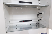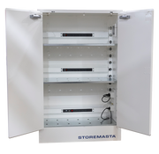 A Storemasta lithium-ion battery cabinet can simultaneously charge multiple workplace batteries in a safe and protected environment. Storemasta offers an 8 and 18 outlet model of battery cabinet, which allows the user to charge up to 8 or 18 li-ion batteries – depending on the chosen model. The 8 outlet battery charging cabinet offers 2 fully adjustable shelves with 4 electrically certified power outlets on each shelf, while our larger 18 outlet model offers 3 shelves with 6 outlets on each.
