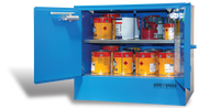 SAFE-T-STORE© under bench storage cabinet for corrosive substances with a 100 litre capacity and featuring the patented SAFE-T-CLOSE© sequential closing system.