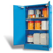 SAFE-T-STORE© under bench storage cabinet for corrosive substances with a 250 litre capacity and featuring the patented SAFE-T-CLOSE© sequential closing system.