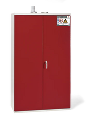Classical door technology (door handle). For the storage of pressurised gas cylinders. Type testing by MPA/TÜV SÜD according to DIN EN 14470-2, DIN EN 16121 and DIN EN 16122, EK5/AK4 09-10:2009 and AfPS GS 2014:01 PAK Mark of approval: GS/CE mark, high quality mark of approval by TÜV SÜD Construction and colour:
