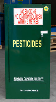 Storemasta's Australian made 60L - Pesticides Storage Cabinet is a compact-sized solution ideal for under-bench storage of toxic substances. The Pesticide Storage Cabinet range is purpose-built for the safe and compliant storage of pesticides indoors.