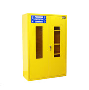 Moreover, the PPE cabinet is highly versatile and can also be used for the storage of additional emergency equipment. This includes absorbent cotton, chemical protective clothing, protective boots, as well as protective glasses and goggles, ensuring a comprehensive storage solution for a variety of protective and emergency gear.